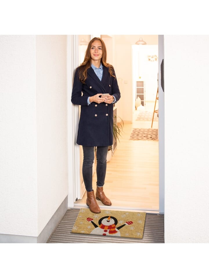 Этот красивый входной коврик надежно сохранит чистоту в вашем интерьере. Устойчивый к атмосферным воздействиям коврик для обуви из кокосового волокна можно размещать как в помещении, так и на открытом воздухе. Благодаря нескользящей нижней стороне коврик для грязи плотно прилегает к полу, когда вы снимаете обувь. Помимо своих практических свойств, коврик также впечатляет своим привлекательным дизайном: крутой мотив снеговика идеально вписывается в зимнее и рождественское время года и обеспечивает дружелюбный прием ваших гостей.