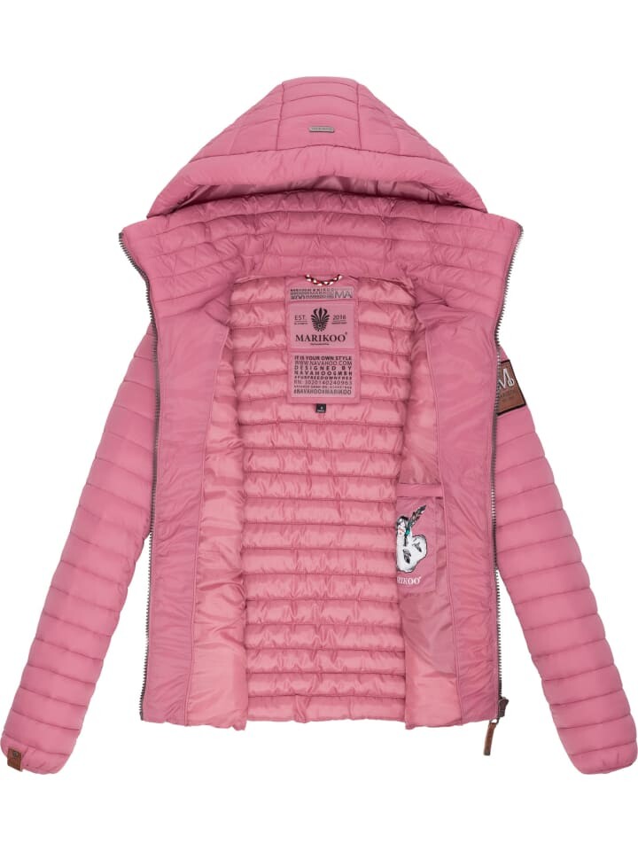 ВИД: Стильная женская стеганая куртка со съемным капюшоном и высоким воротником-стойкой от Marikoo, идеальна для переходного периода (весна и осень) благодаря светлой подкладке. МАТЕРИАЛ: Женская переходная куртка привлекает внимание благодаря матовому цвету. мерцающий внешний материал и очень удобный в носке благодаря мягкой подкладке