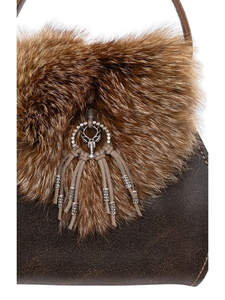 Женская вечерняя сумка 156-4232 от Sima сочетает в себе элегантность и эксклюзивность в привлекательном дизайне. Сумка, изготовленная из высококачественной коричневой кожи, излучает вневременную красоту и подходит для различных случаев. Тщательная обработка и тщательный подбор материалов подчеркивают высокое качество изделия. Специальная застежка сумки отделана натуральным мехом лисы, что придает аксессуару роскошный вид. Сочетание элегантной кожаной структуры и элегантного меха лисы делает вечернюю сумку привлекательной и расставляет стильные акценты в любом вечернем наряде.