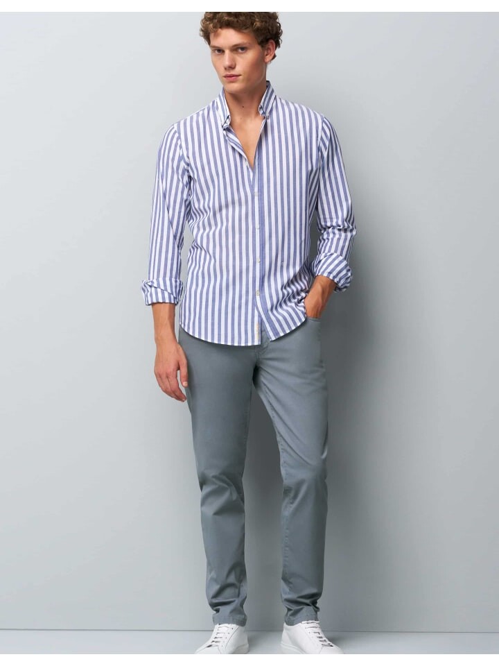 Спортивные пять карманов из легкого органического хлопка с модной микроструктурой. Современный дизайн и высокое качество изготовления. Максимальный комфорт при ношении благодаря эластичному материалу и круглому поясу. 100% климатически нейтральный, ЧЕСТНЫЙ и ответственно произведенный в Европе.