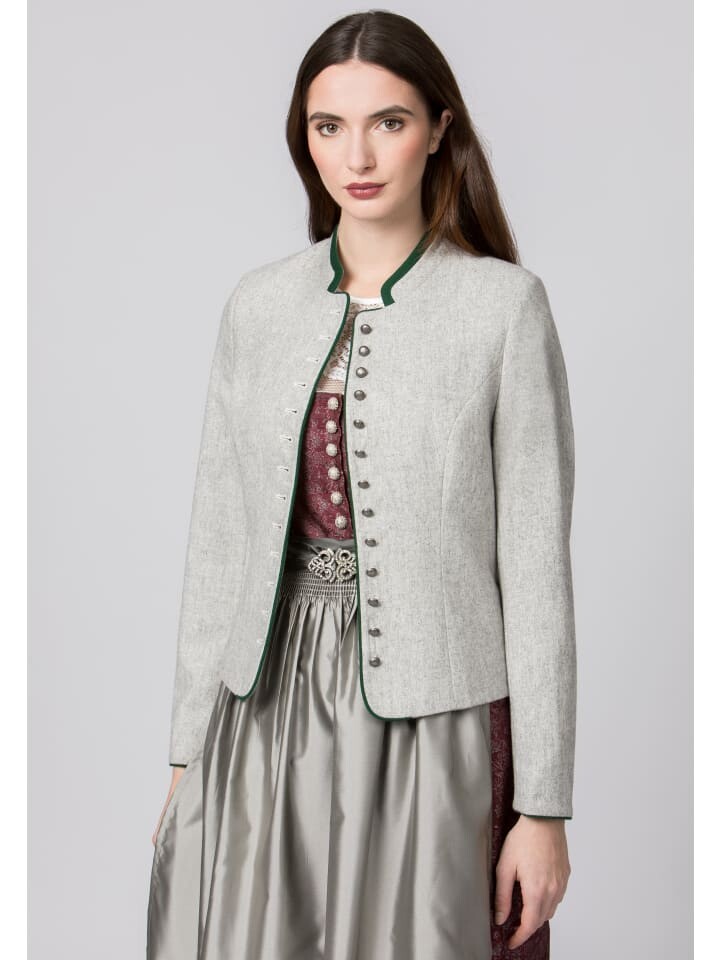 Традиционный жакет Элизабет от Heimatgwand. Куртка из высококачественной легкой ткани лоден создает женственный силуэт. Индивидуально подобранный крой с баской обеспечивает хорошую фигуру и его можно комбинировать разными способами. Классический двухцветный воротник-стойка и контрастная окантовка характеризуют этот традиционный «базовый образ» и делают его вашим постоянным спутником.