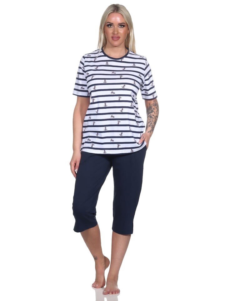 Женская пижама Normann с короткими рукавами и капри в морском стиле, также в размерах оверсайз