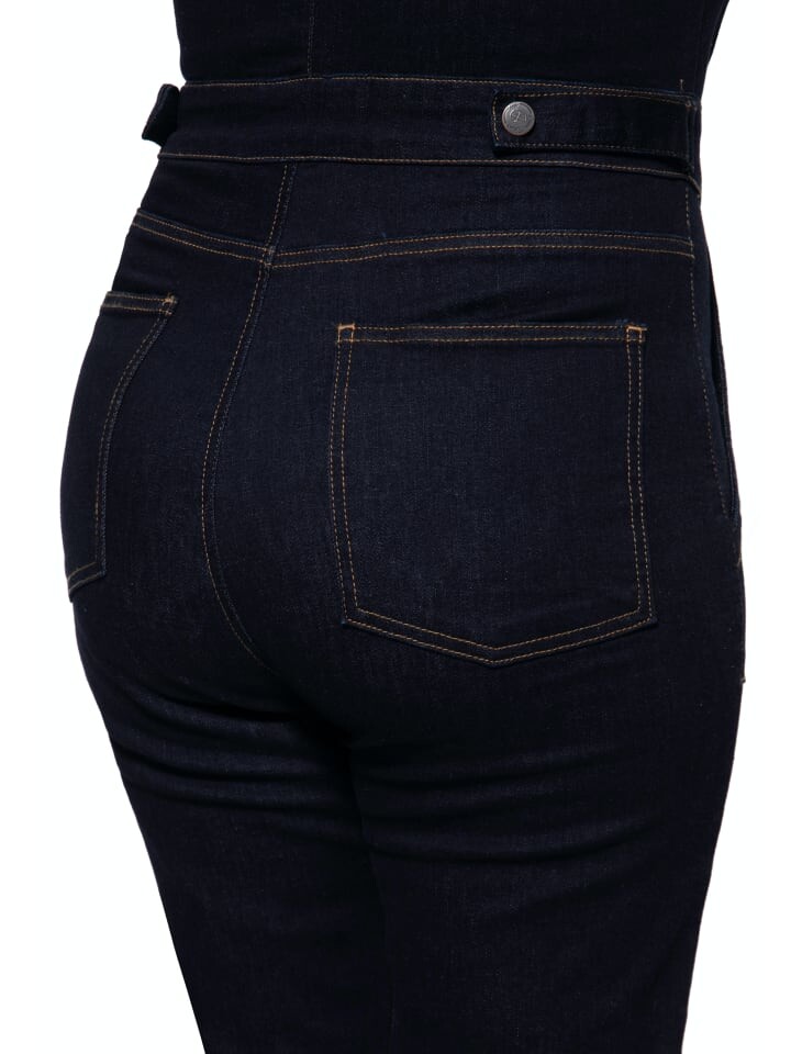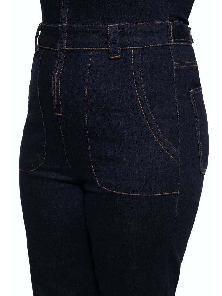Джинсовая ткань обработана аккуратными контрастными швами, которые умело подчеркивают общий вид. Благодаря добавлению эластана ткань приятно тянется, что гарантирует свободу движений и комфорт без потери формы.