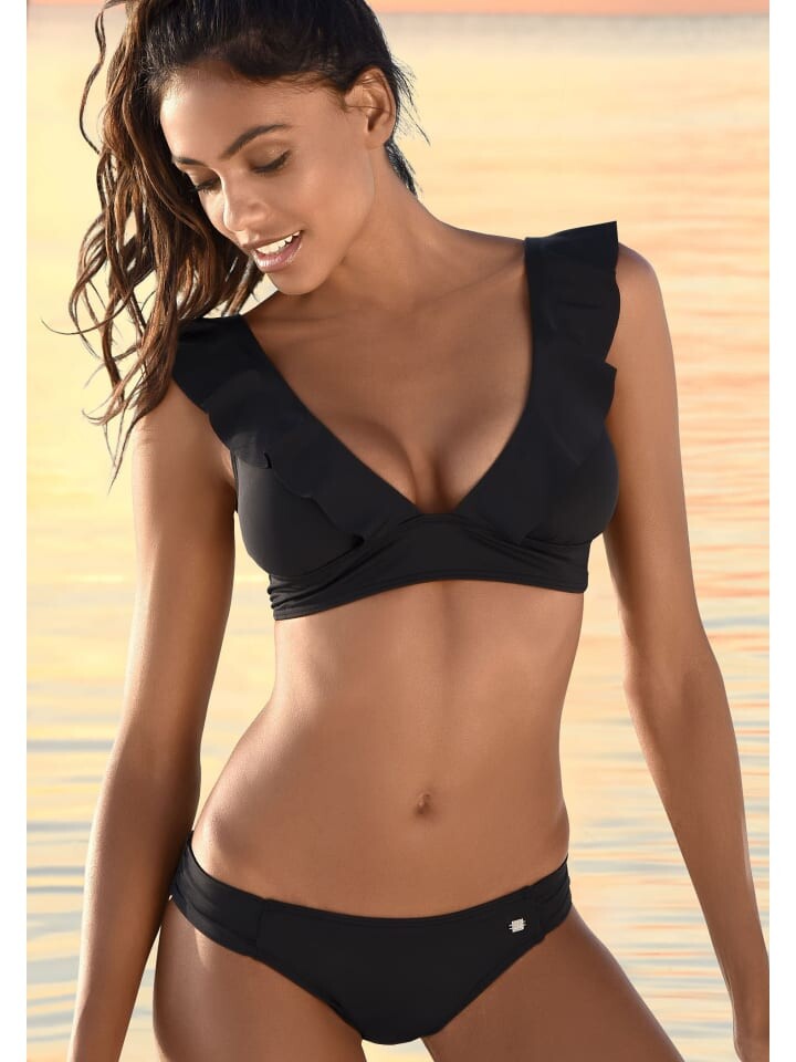 Треугольное бикини от дизайнера Jette Joop. Элегантный гофрированный край. Съемные чашки. Верх можно завязать сзади. На плавках бикини присборенные вставки. Внешний материал: 84 % полиамид, 16 % эластан. Подкладка: 100% полиамид