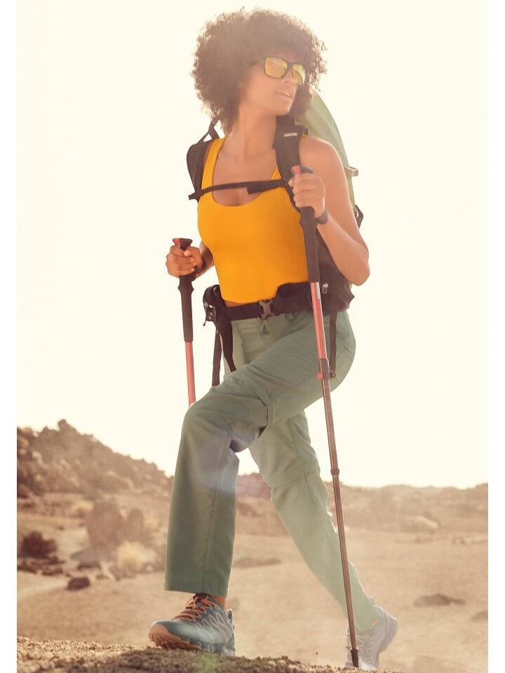 Трекинговые брюки 2-в-1 от Lascana Active. Длину можно регулировать по погоде с помощью молнии. Боковые карманы на молнии. Пояс с пуговицей и молнией для расстегивания. Качество эластичности для высокого комфорта.