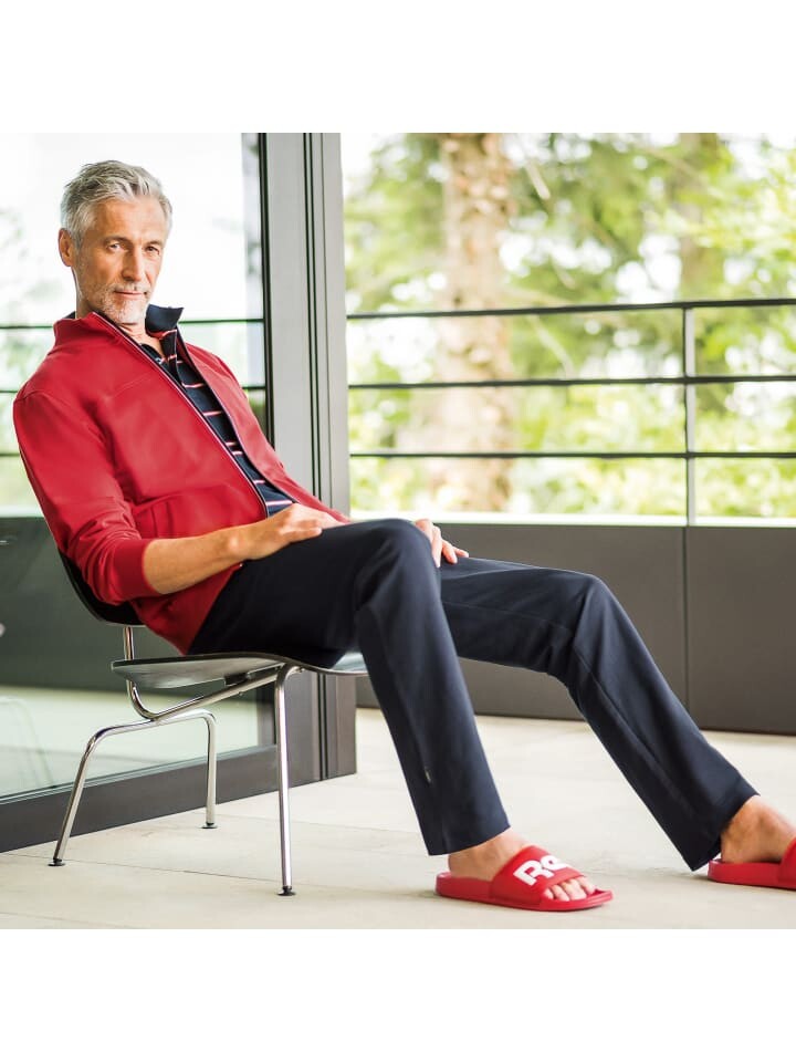 Мужские брюки для отдыха Joy Sweat "FREDERICO". Удивительно удобные брюки очень простого спортивного кроя. Он приглашает вас почувствовать себя хорошо и расслабиться. Благодаря свободному крою и открытой прямой форме штанин они обеспечивают большую свободу движений и высокий уровень комфорта. Прошитый эластичный пояс с внутренней кулиской обеспечивает идеальную посадку. Ценные вещи можно безопасно хранить в двух боковых карманах на молнии. Вышивка логотипа в тон на манжетах ног обеспечивает аутентичность. Изготовлен из мягкого спортивного материала без начеса с внутренней стороны, дышащий и сохраняет форму.