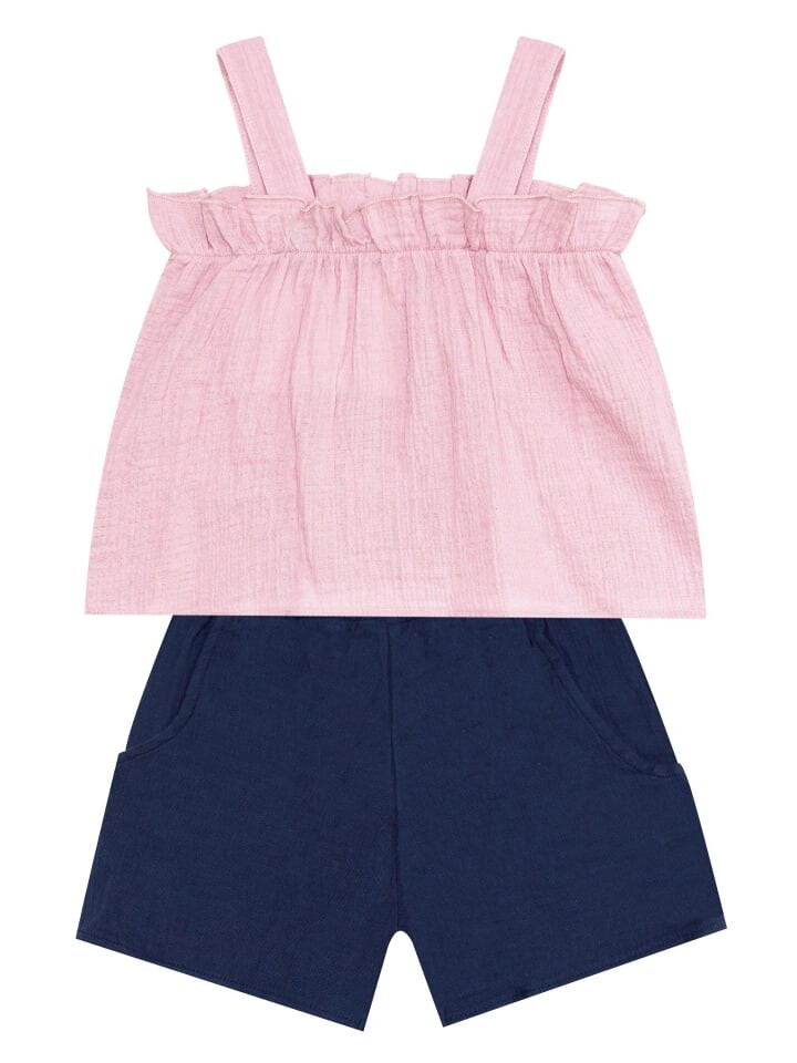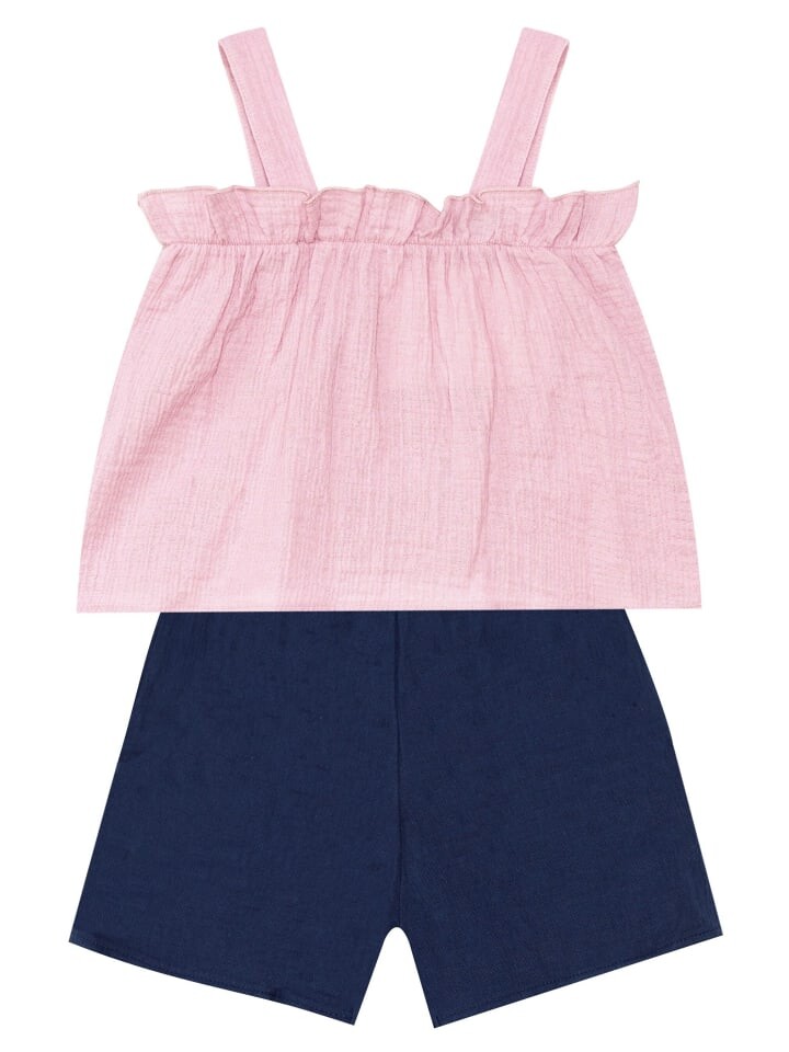 шт. Набор девочек. Муслиновая блузка с рюшами на бретелях. Муслиновые шорты с 2 карманами. Классический крой. Если вы растете, рекомендуем брать на размер больше. Вся продукция Denokids изготовлена с учетом безопасности детей.