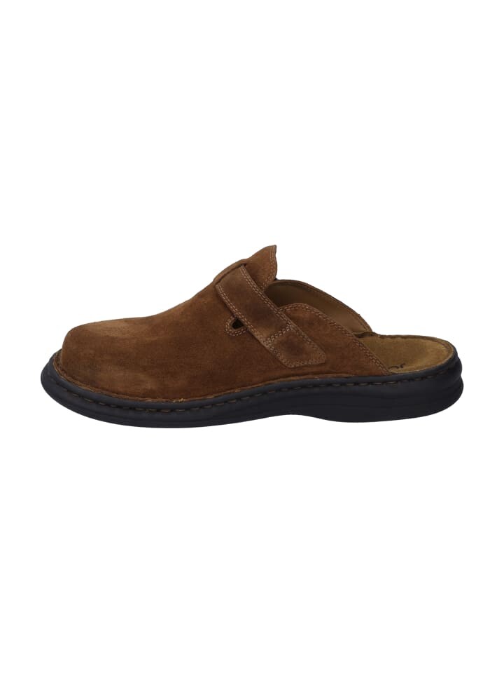 Удобные кожаные мужские сабо от JOSEF SEIBEL отныне будут вашим постоянным спутником. Подошва из воловьего велюра изготовлена с высоким качеством и обеспечивает оптимальный комфорт. Обувь имеет ширину G, идеальную для нормальной стопы. Плоский каблук имеет высоту каблука 1,5 см. Устойчивая подошва изготовлена из ПУ, она легкая, мягкая, гибкая и податливая. Закрытый носок придает обуви элегантность. Обувь идеально подходит для повседневного ношения, так как ощущение, комфорт и качество изготовления созданы так, что вы можете без проблем носить ее в течение всего дня.