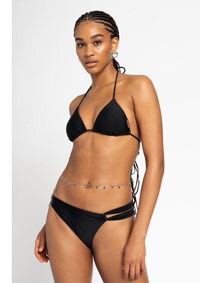 - Задняя часть стрингов бикини украшена золотой мерцающей этикеткой