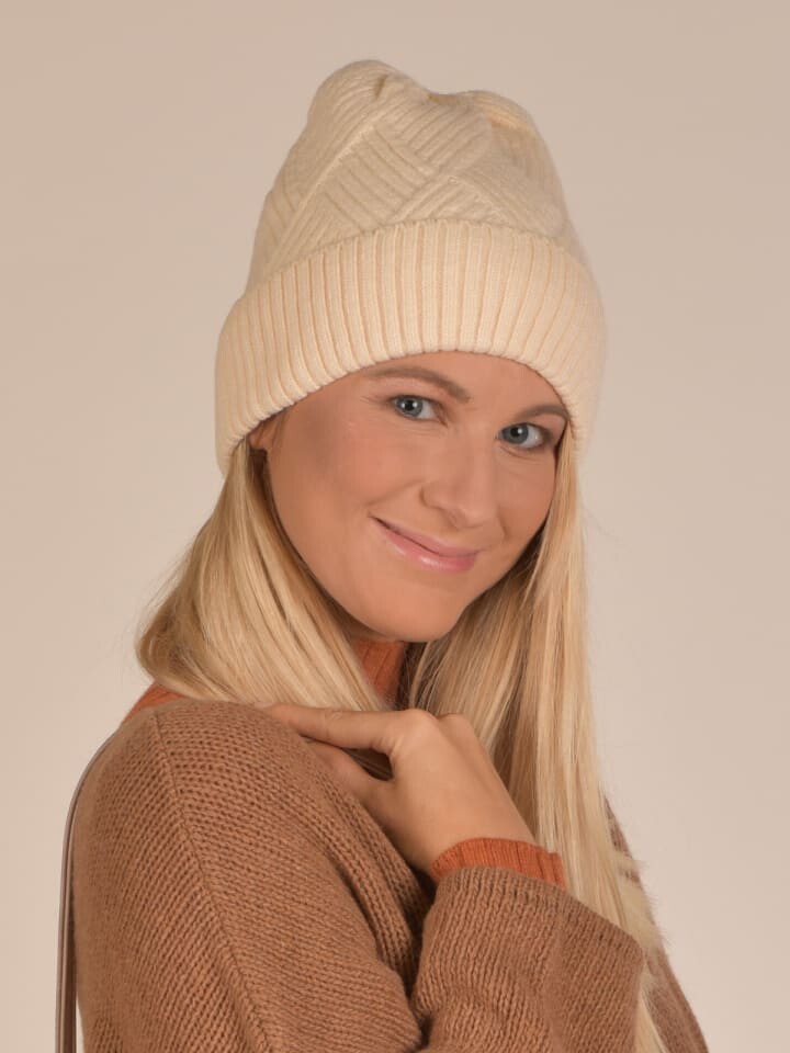 styleBREAKER элегантная однотонная вязаная шапка-бини с ребристым узором ромбовидной формы и широкими полями.