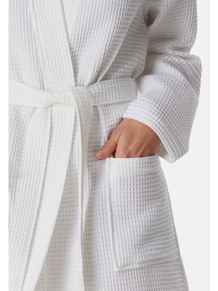 Стильный вафельный пике делает этот женский халат вечной классикой в каждой ванной комнате! Материал изготовлен из 100% экологически чистого хлопка и превосходно балует вашу кожу. Элегантный крой кимоно красиво подчеркивается регулируемым ремешком и двумя карманами. Верный спутник после каждого душа, в спа-салоне или в качестве халата.