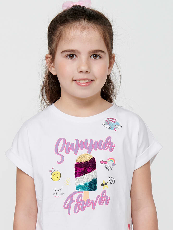 Футболка с коротким рукавом. Круглый вырез. Графический принт спереди. Состав 95% хлопок 5% эластан.