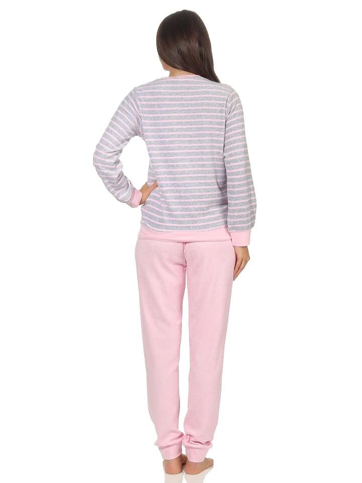 Женская махровая пижама с длинными рукавами и манжетами в элегантной полоске - 291 201 13 780