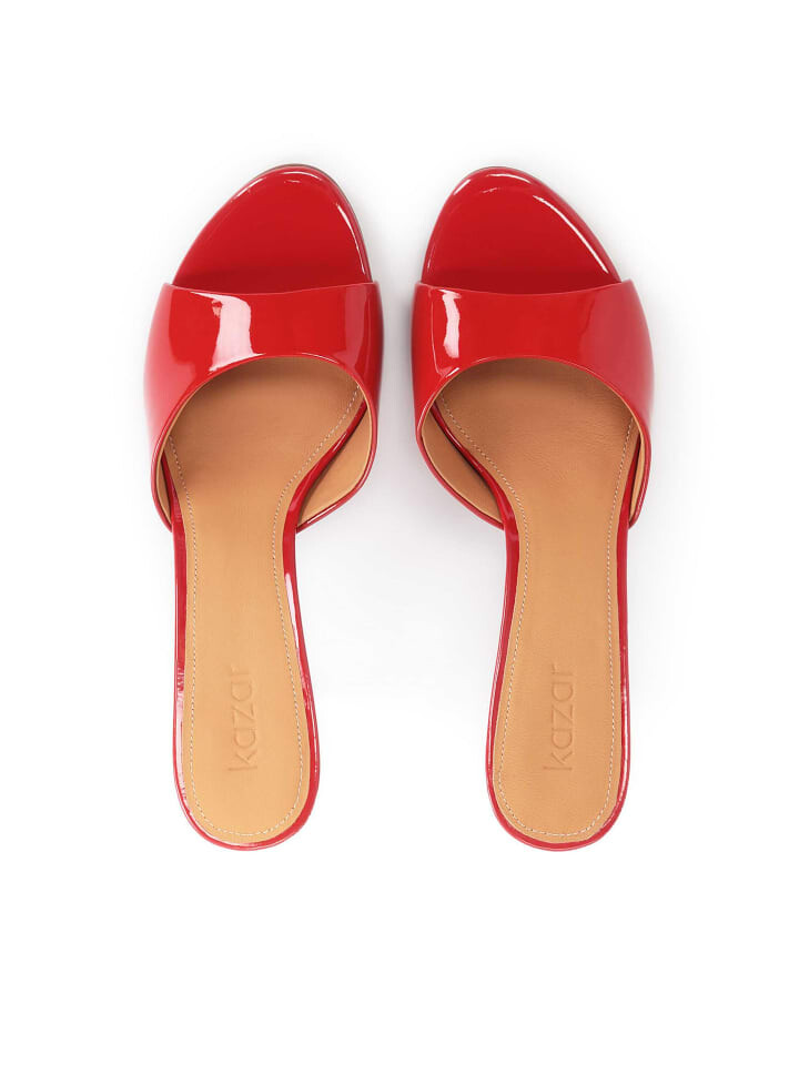 Мюли из высококачественной лаковой кожи красного цвета – эффектная и чрезвычайно женственная модель. Простой ремешок спереди, высокий каблук и блестящая кожа создают шикарную композицию. Универсальная модель подходит под повседневные, повседневные и вечерние наряды. Мюли на каблуке представляют собой интересную альтернативу классическим сандалиям.