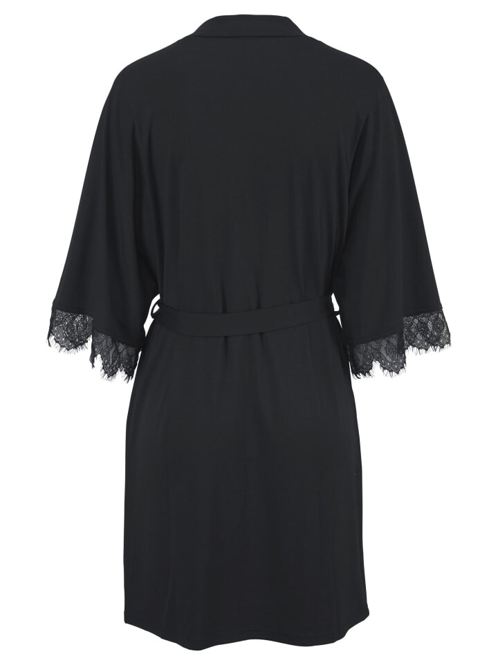 Кимоно с рукавами длиной 3/4 и кружевной отделкой по краю. Идеальный образ благодаря красивому поясу. Приятное качество полиэстера и вискозы.