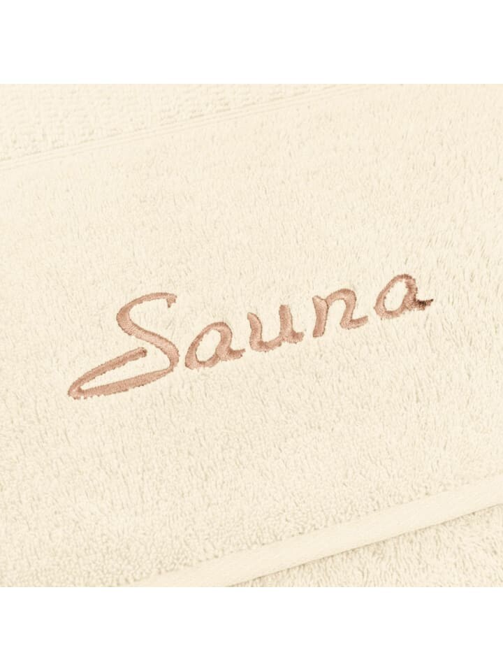 - Однотонное полотенце для сауны с жемчужной структурой и вышивкой «Сауна»