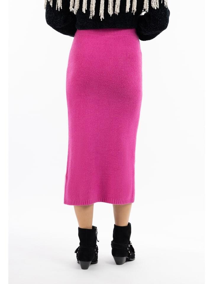 Трикотажная юбка от IZIA — незаменимая вещь в вашем зимнем гардеробе длины миди и классического силуэта-карандаш. Плотно связанная пряжа имеет высокий эластичный пояс и небольшую ребристую манжету по низу.