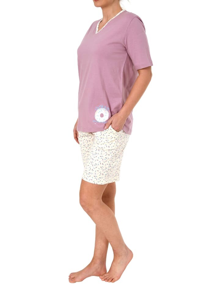 Чтобы перекусить! Эти милые женские короткие пижамы от Normann украшены мотивом пончиков. Короткие шорты пижамы украшены принтом в виде пончиков по всей поверхности и имеют удобную посадку.