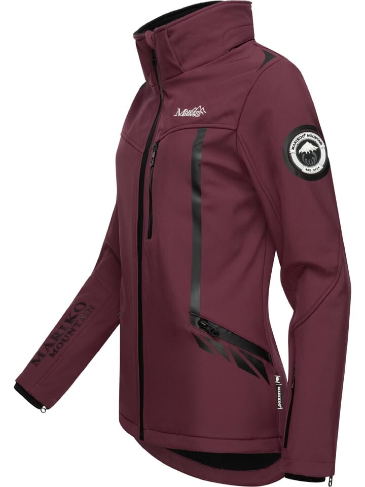 ВИД: Спортивная женская куртка из софтшелла от Marikoo с капюшоном на подкладке (съемным) не только шикарна благодаря контрастным цветным деталям, но и является отличным универсалом для переменчивой погоды в переходный период (весна/осень)