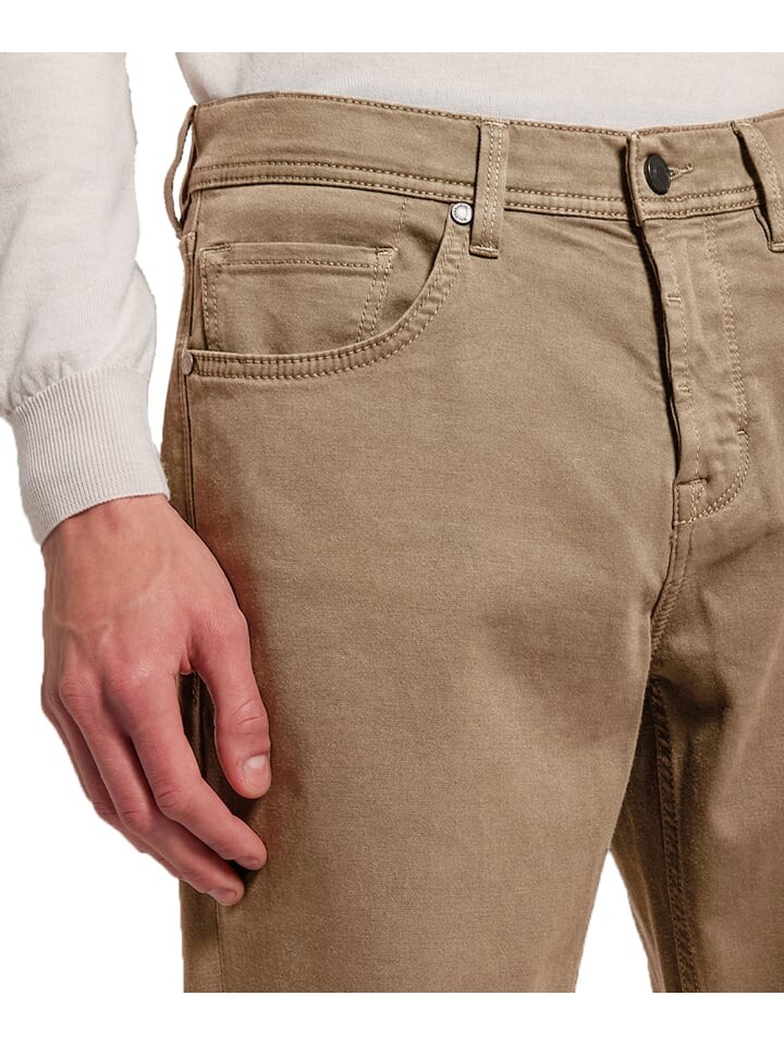 Простые однотонные брюки от бренда Baldessarini. Модель имеет свободный крой обычного кроя, что обеспечивает ее удобство в ношении и приятную посадку. Ткань с высоким содержанием хлопка делает брюки приятными для кожи, прочными и дышащими. Добавление небольшого количества эластана дает модели большую свободу движений.