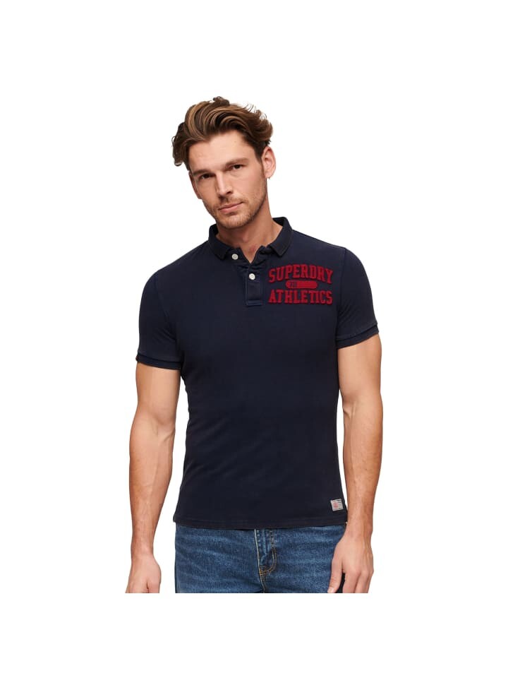 Однотонная мужская рубашка-поло от бренда Superdry. С принтом логотипа спереди и небольшими деталями логотипа, характерными для бренда. Идеально подходит для повседневного ношения.