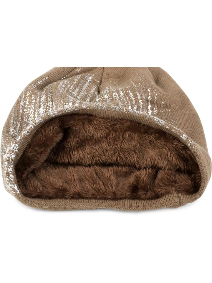 styleBREAKER очень теплая вязаная шапка-бини с металлическим принтом и подкладкой из мягкого флиса.