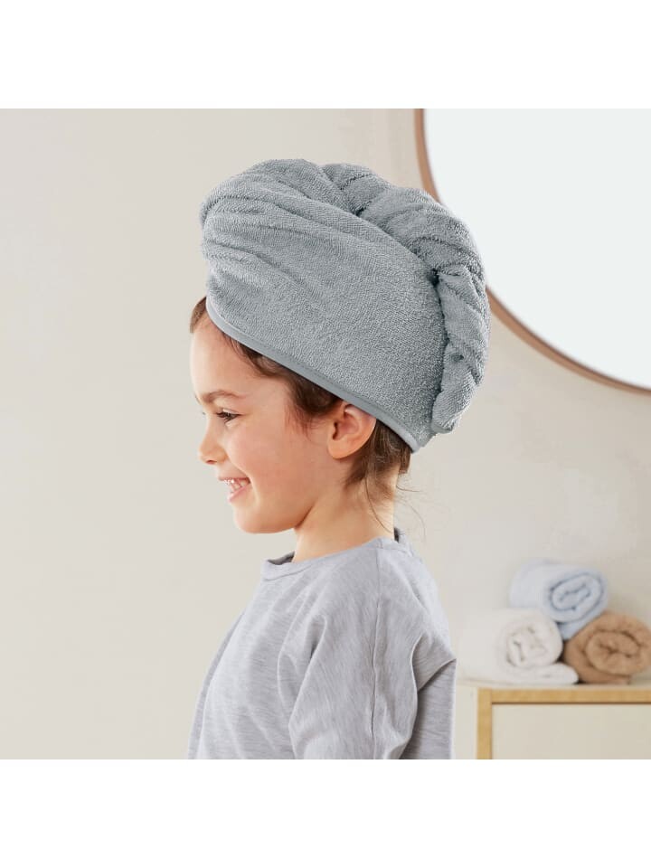 Erwin Müller прогулочный махровый тюрбан в упаковке по 3 штуки для детей и взрослых. Шикарное решение для дома или для здоровья. Практичный тюрбан для волос легко крепится благодаря продуманной форме: оберните его вокруг головы, скрутите и зафиксируйте пуговицей на затылке. Его пушистые, мягкие и впитывающие свойства остаются надолго красивыми и долговечными. Время сушки феном сокращается, волосы меньше подвергаются стрессу и, следовательно, дольше остаются блестящими. С ленточной окантовкой по всему периметру.