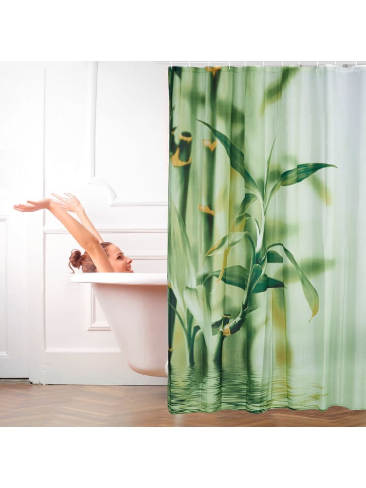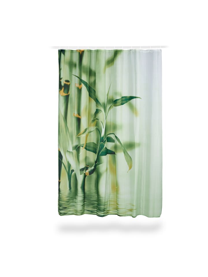 Занавеска для душа, имитирующая бамбук, придаст вашей ванной комнате приятную непринужденную атмосферу. Яркий зеленый излучает спокойствие и в то же время освежает. Непрозрачная и водоотталкивающая штора крепится к штанге над ванной с помощью пластиковых крючков. Это означает, что вы можете принять душ в ванне, не мыть после этого пол.
