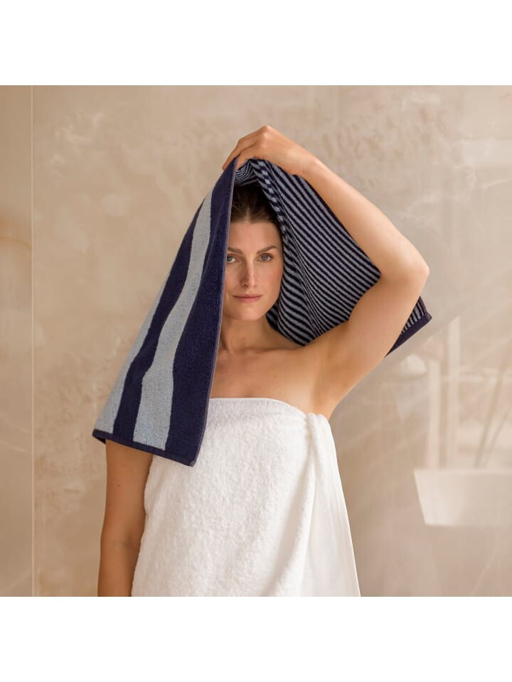 Подарите себе уникальные ощущения и укутайтесь после душа очень мягким полотенцем для душа (80 x 150 см) из коллекции SUPERWUSCHEL. Теперь коллекция обретает новый цвет: двусторонние полотенца для душа (80х150 см) с ярким полосатым дизайном идеально сочетаются с однотонными цветами и придают ванной комнате свежий и модный вид. Благодаря специально очищенному хлопку премиум-класса они особенно объемны и впитывают влагу. Нежные детали, такие как высококачественный вышитый логотип и подвернутая кромка, делают ее настоящей приманкой для глаз. Очень мягкое и объемное двустороннее банное полотенце в полоску. Изготовлен из 100% высококачественного и впитывающего хлопка премиум-класса. С практичной вешалкой для шнура и вышитым логотипом бренда.