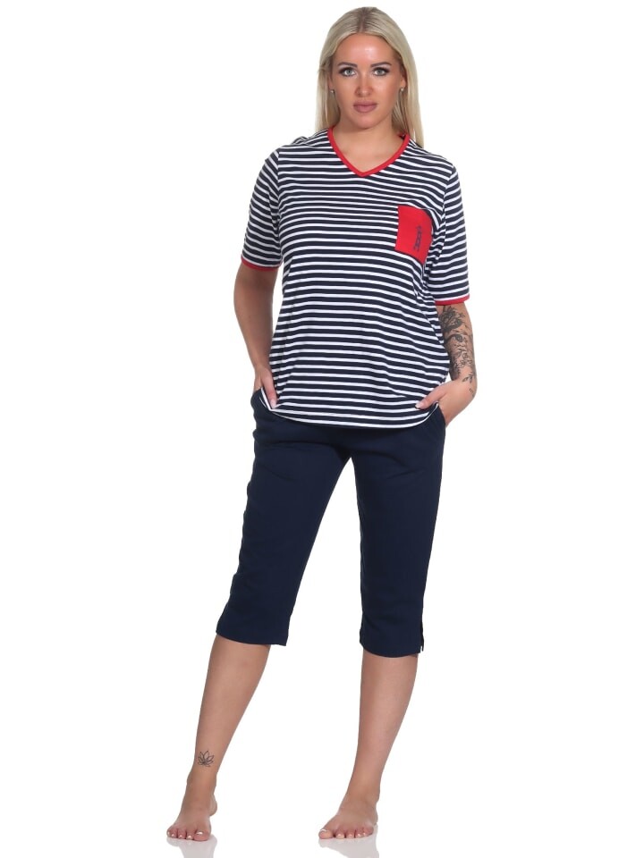 Морской полосатый образ сочетается с одеждой для сна и вызывает желание отправиться на море! Вот почему вы всегда будете хорошо одеты в этой летней женской пижаме с короткими рукавами в морском стиле от Normann, потому что эта пижама — идеальный выбор, если вам нравится одежда в морском стиле.