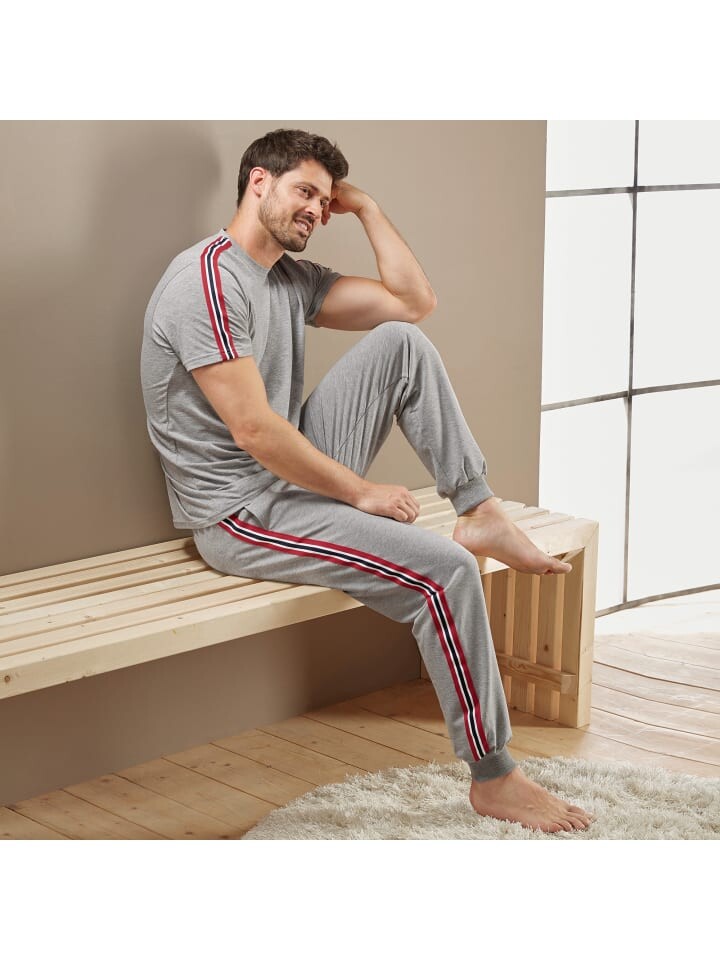 Мужские брюки для отдыха Erwin Müller Sweat, длинные. Свободные брюки для отдыха станут идеальным спутником после работы на диване или занятий спортом. Контрастные цветные полосы вдоль штанин и манжет дополняют спортивный образ и добавляют современные акценты. С пришитым эластичным поясом, боковыми карманами и кулиской. Мягкое качество гарантирует удобную посадку. За ним легко ухаживать, он быстро сохнет и сохраняет отличный вид даже после многочисленных стирок.