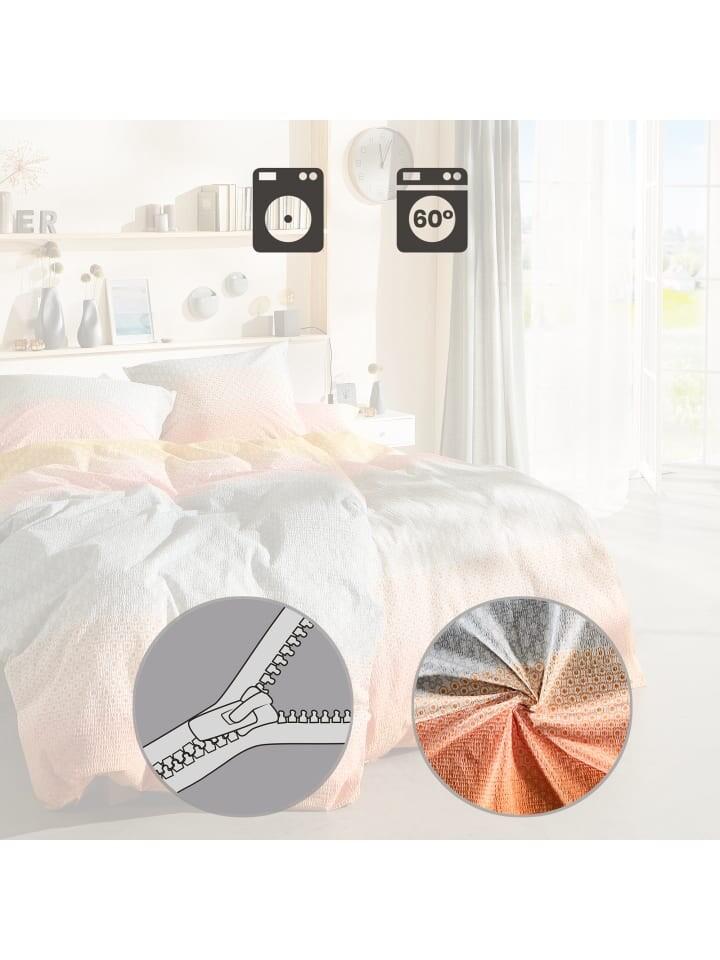 Постельное белье из хлопчатобумажной ткани REDBEST. Горизонтальные полосы с графическим рисунком гармоничных цветов придадут вашей спальне современный вид. Двусторонняя наволочка вносит разнообразие. Мечты сбываются в летней, легкой, ароматной, тонкой ткани с характерной креповой структурой. Вы быстро оцените особые свойства этого простого в уходе материала, который не требует глажки и имеет застежку-молнию: просто постирайте, высушите и наденьте.