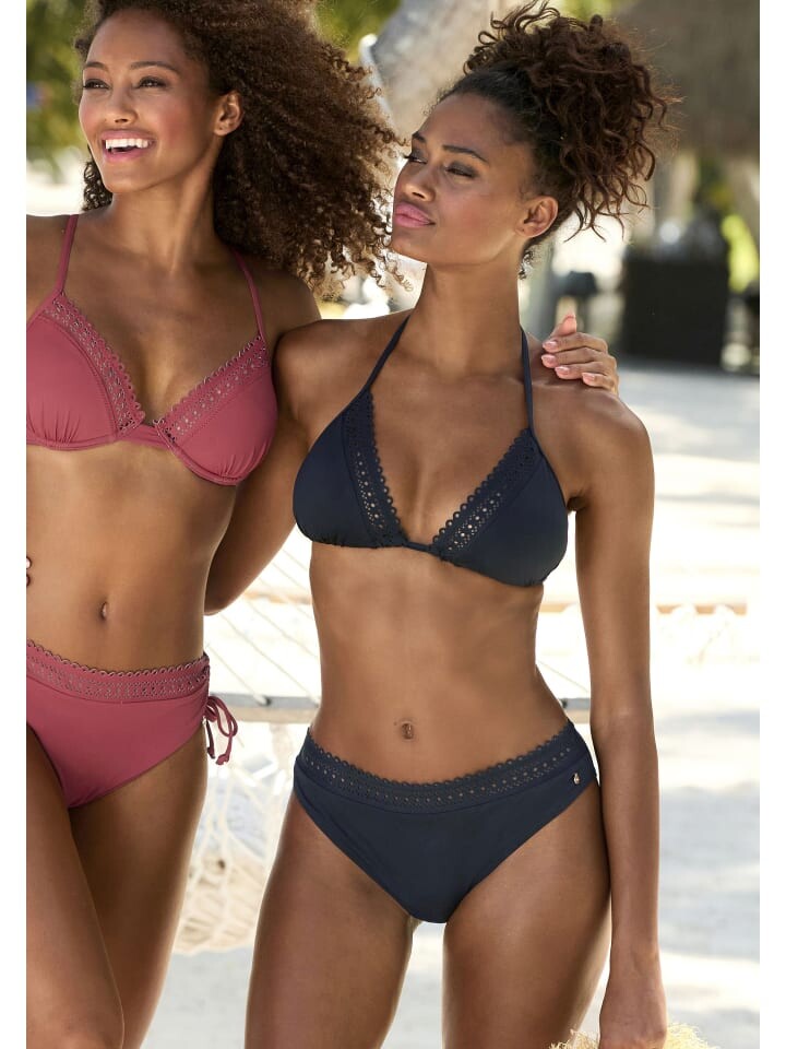 Треугольный топ от s.Oliver с декоративным узором из отверстий в качестве отделочного края. Шейный держатель для завязывания. Съемные чашки. Мягкое качество микрофибры.
