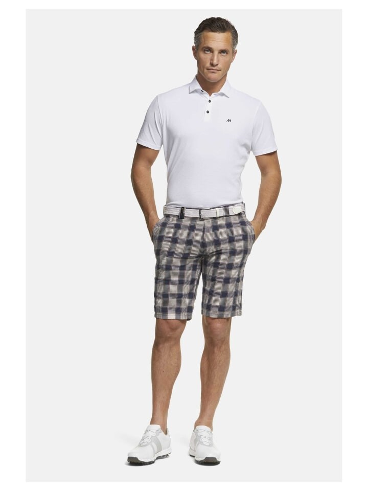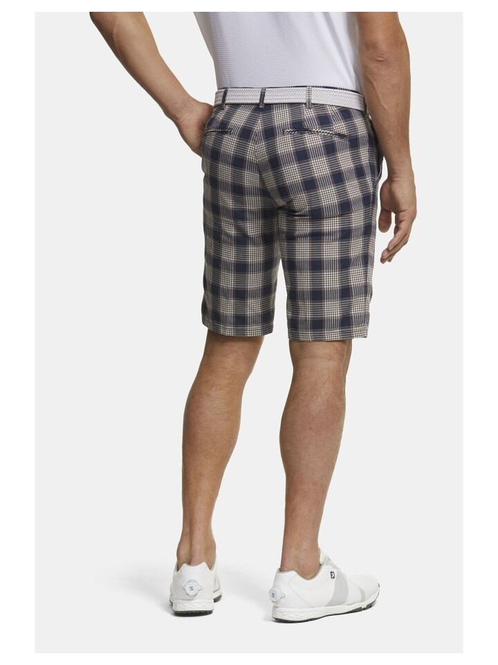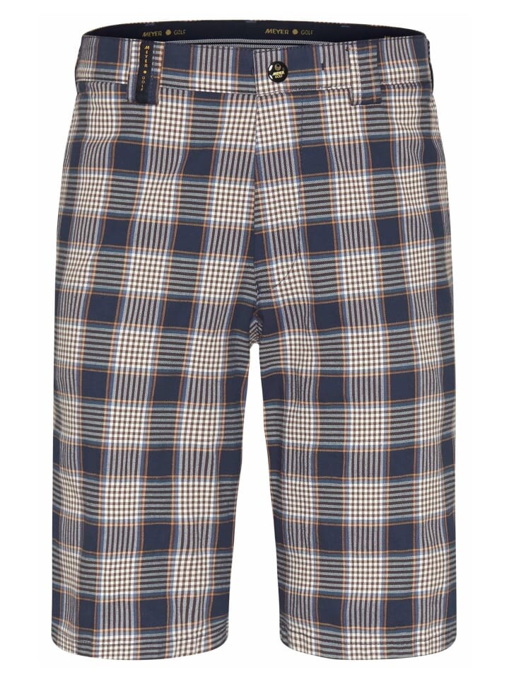 Как и все брюки серии MEYER Golf, задние карманы этих шорт-бермуд имеют невидимую силиконовую полоску, которая предотвращает выскальзывание перчаток. Удобный эластичный пояс закрывается застежкой, обеспечивающей максимальную стабильность размеров с помощью застежки-кнопки. Большой клетчатый дизайн ярких цветов также визуально выделяет.