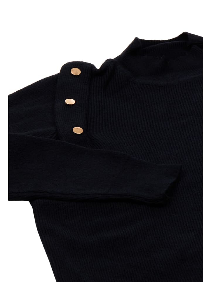 Этот изысканный свитер с длинными рукавами имеет водолазку и ребристую текстуру по всей ткани. Украшенная рядом декоративных пуговиц на плечах, она сочетает в себе классическую элегантность и современный стиль. Разработанный для облегающего силуэта, манжеты и нижний край отделаны ребристым узором для придания дополнительного стиля.