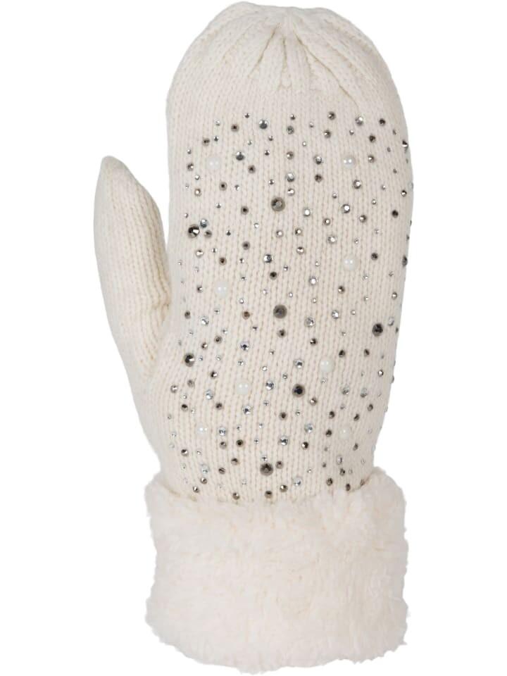 styleBREAKER однотонные вязаные перчатки с теплой подкладкой - варежки, украшенные стразами и жемчугом, и подкладка из термофлиса.
