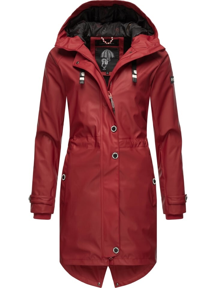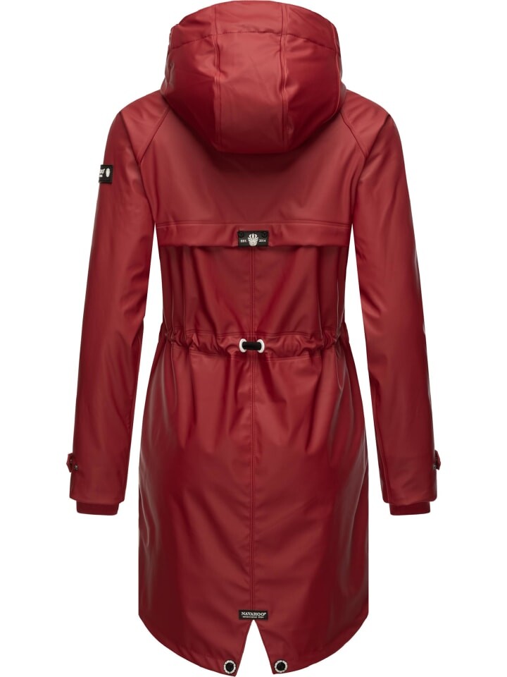 ВИД: Водонепроницаемый женский плащ от Navahoo с большим капюшоном и приятным удобным прямым кроем - идеален для холодной, влажной погоды в переходный период. МАТЕРИАЛ: Функциональное пальто водонепроницаемо и ветронепроницаемо благодаря сварным швам и прорезиненному материалу, уютной мягкой подкладке. из плюшевого меха в верхней половине куртки и шелковистой ткани в нижней половине и на капюшоне с классным принтом. ПОСАДКА: теплое пальто для отдыха на открытом воздухе удлиняется сзади (крой «ласточкин хвост» с разрезом обеспечивает большую свободу движений). ) и имеет идеальную длину по ягодицам на талии, индивидуально регулируется с помощью кулиски