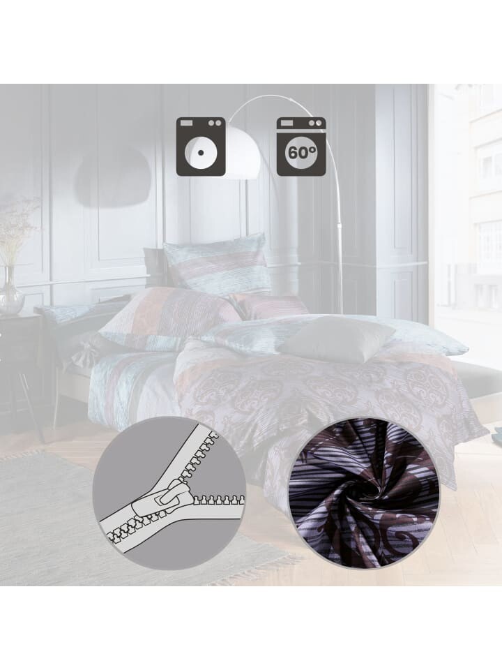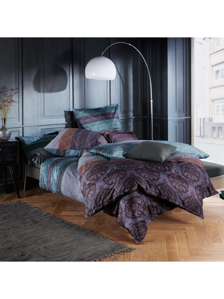 Сатиновое постельное белье Erwin Müller Mako. Игра филигранных орнаментов, различных полосок, гармоничных цветов и двусторонних чехлов выглядит очень элегантно. Он привносит в вашу атмосферу образ жизни и делает вашу кровать особенной приманкой для глаз. Дизайн прекрасно сочетается с шелковистой блестящей тканью из тончайшего чесаного мерсеризованного хлопка. Этот чувственный материал — настоящее удовольствие для вашей кожи. Он имеет очень тонкую нить, плотно сплетен и пропускает воздух, обеспечивая приятные условия для сна. Легко надевается благодаря практичной молнии.
