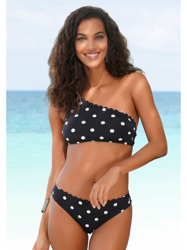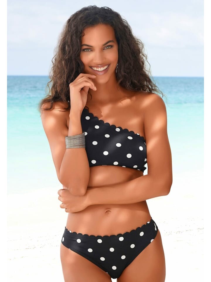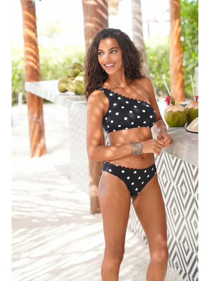 Изысканный топ бикини-бюстье от Lascana модного дизайна на одно плечо с точечным узором и фестончатым краем. Съемные мягкие чашки. Из серии Микс-Кини. Мягкая микрофибра.