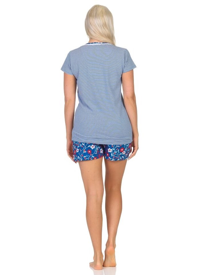 Все всегда зависит от деталей, и у этой женской пижамы с короткими рукавами Shorty есть много красивых: верх пижамы выполнен в полосатом виде, окрашенном в пряжу Короткие пижамные брюки-шорты также украшены цветочным принтом по всей поверхности. Вырез украшен тонким кружевом, что подчеркивает качество этой пижамы.