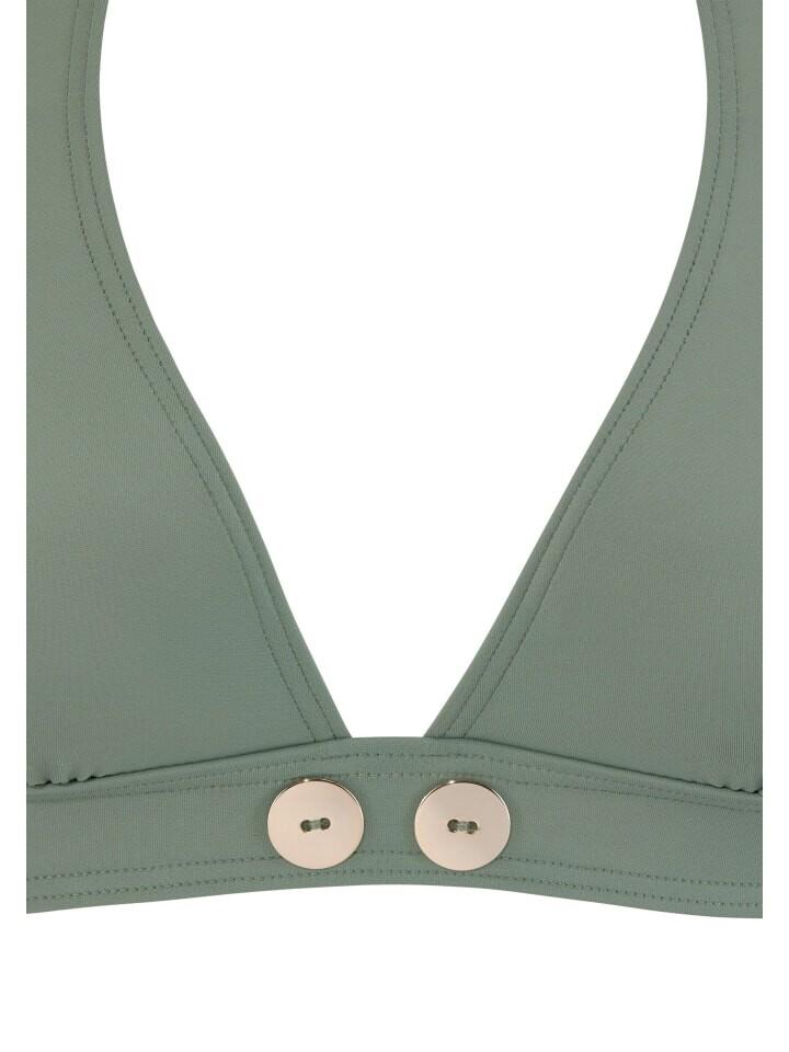 Стильное треугольное бикини от Vivance. Шейный держатель для завязывания. Боковые планки с застежкой сзади. Съемные мягкие чашки. Плавки бикини классического кроя с декоративными пуговицами по бокам. Приятное качество.