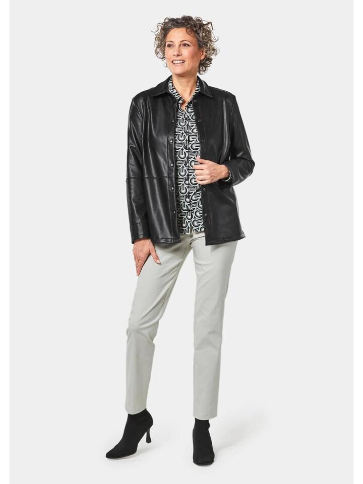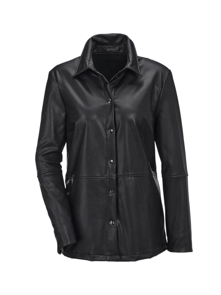 Блузка-жакет в модном кожаном исполнении. Универсальная, сверхмягкая модель со слегка начесанной внутренней стороной, приятная в носке и обеспечивающая максимальный комфорт. Разделенные швы обеспечивают идеальную посадку, а разрезы на манжетах и подоле обеспечивают оптимальную свободу движений. Длина около 71 см по размеру. 46, размер около 67 см. 23.