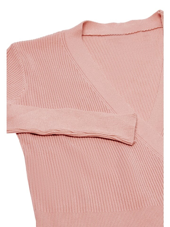 Обновите свой гардероб этой шикарной вязаной одеждой. Ребристая текстура и глубокий V-образный вырез с завязкой спереди подчеркивают повседневную элегантность. Длинные рукава с приталенными манжетами придают нотку элегантности, а укороченная длина обеспечивает универсальность для многослойной одежды или в качестве стильного варианта многослойной одежды.