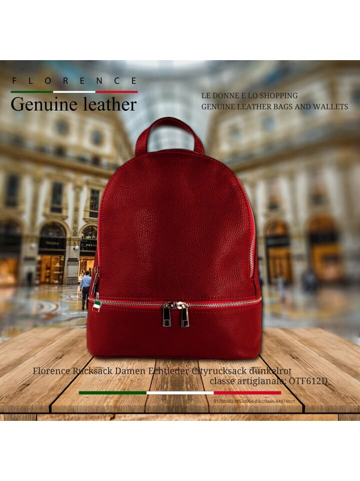 Городской рюкзак из натуральной кожи женский темно-красный Флоренция