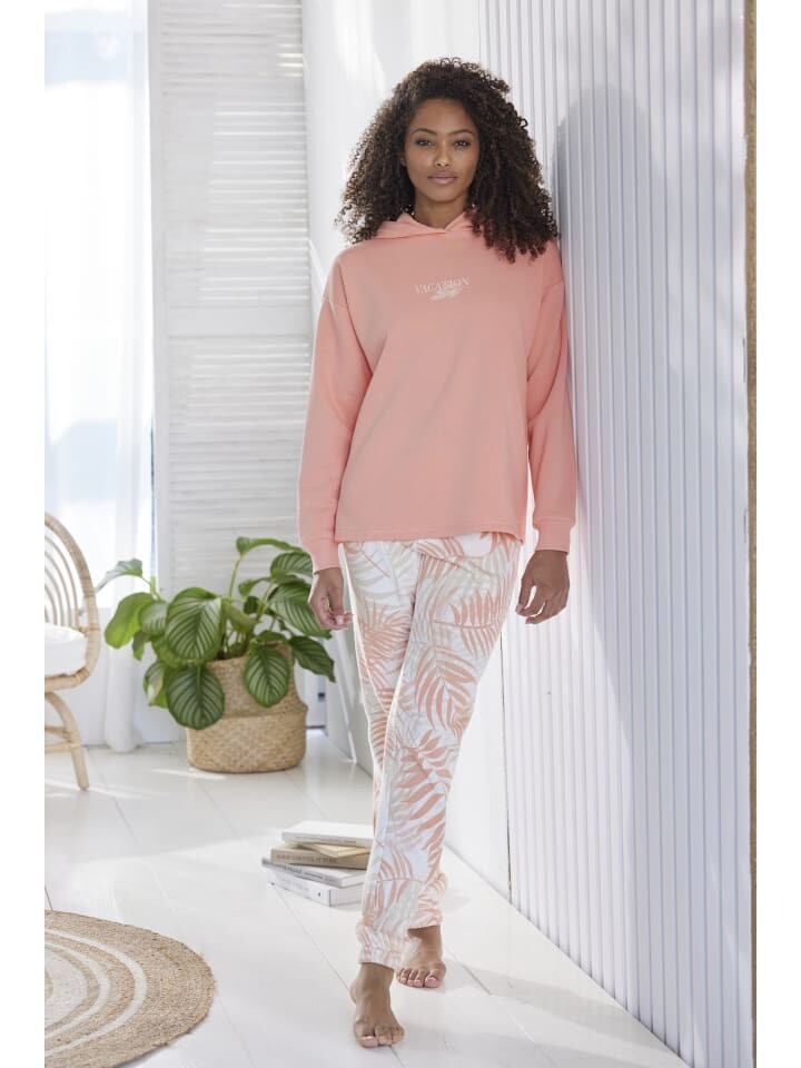 Комфортная толстовка от Lascana с тонким принтом спереди и капюшоном на подкладке. Заниженные плечевые швы. Длинные рукава с ребристыми манжетами. Свободная посадка. Мягкое качество пота.
