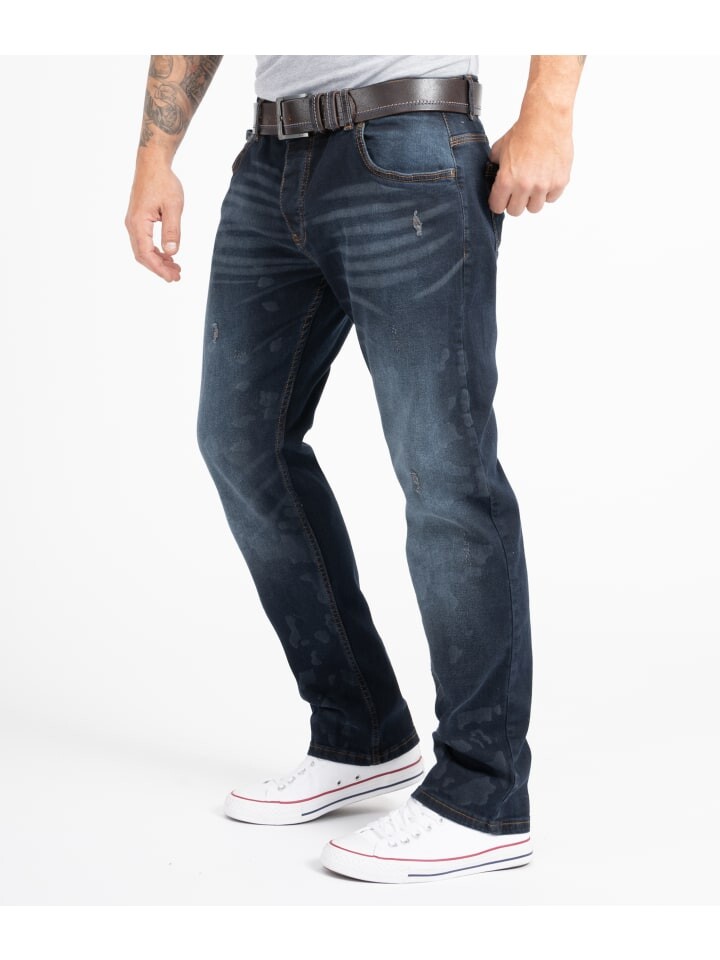 Синие джинсы удобной посадки – классика для повседневной работы, отдыха и отпуска! Многие из наших мужских джинсов от светлого до темно-синего цвета выглядят стильно и поношенно. Брюки повседневного кроя имеют прямые штанины, типичный дизайн с пятью карманами и нашивку в стиле рок-крик. Помимо практичных петель для пояса, они имеют застежку на пуговицу или молнию. Наши мужские джинсы изготовлены из 100% хлопка или имеют высокое содержание хлопка. В некоторых моделях эластичный компонент обеспечивает идеальную посадку.