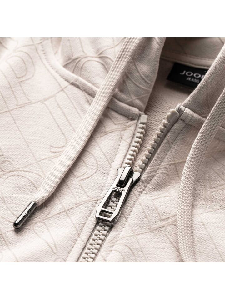 Однотонная мужская толстовка с капюшоном с принтом из флока в тон от бренда JOOP! ДЖИНСЫ. Изготовлен из чистого хлопка с ребристыми манжетами, молнией и боковыми карманами.