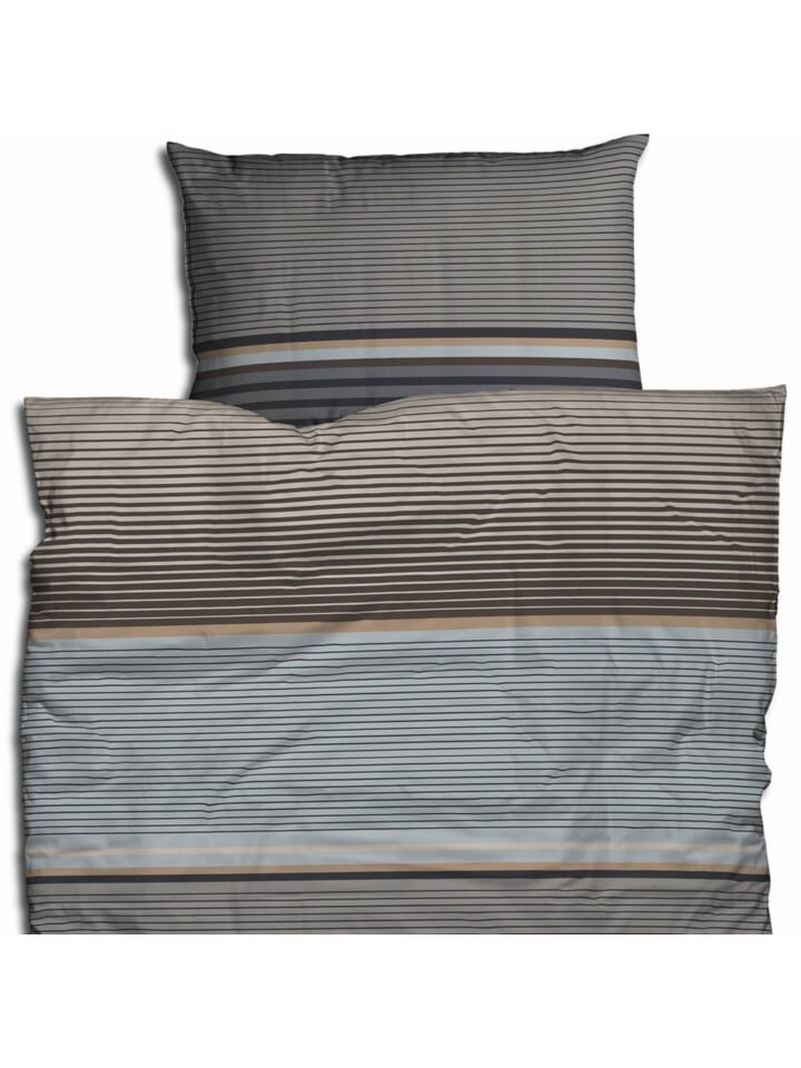 Это постельное белье впечатляет своим вневременным дизайном. По всему постельному комплекту проходят эффектные полосы разных оттенков коричневого и серого. Классический вид с горизонтальными полосками впечатляет гармоничным сочетанием цветов и объединяет вневременную элегантность и прямые линии. Устройтесь поудобнее на гладкой и эластичной атласной поверхности из 100-процентного хлопка и наслаждайтесь комфортным и спокойным сном.