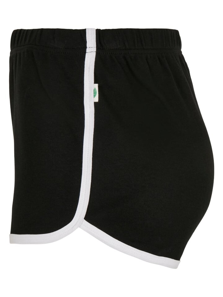 Для спорта, отдыха или сексуального образа для отдыха: короткие шорты изготовлены из органического хлопка в стиле интерлок. Круглый край контрастного цвета укорачивается по бокам, а затем поднимается по бокам к эластичному поясу, что обеспечивает надежную посадку. Органическая этикетка шорт расположена сбоку от контрастной полоски.
