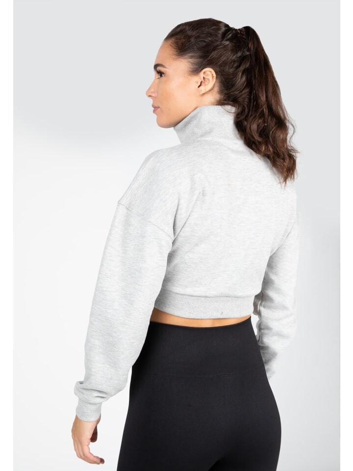 Название говорит само за себя: укороченная толстовка Ocala с молнией до половины. Этот красивый свитшот имеет свободный крой и заниженную линию плеча, поэтому его очень удобно носить. Этот топ согреет вас до, во время или после тренировки — решать вам. Ребристые манжеты и воротник плотно прилегают. Он имеет большую половину молнии и узнаваемый логотип Gorilla Wear. Укороченный свитшот Ocala с молнией до половины доступен в черном и сером цветах.